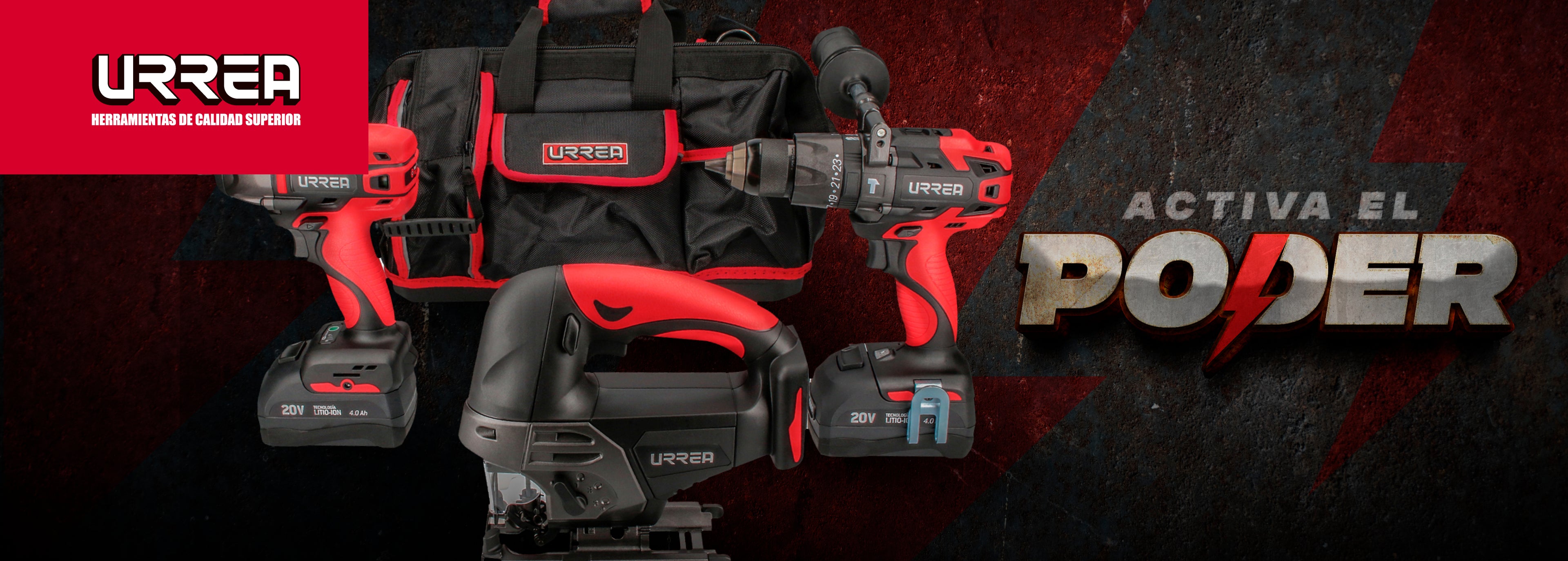 Juego de rotomartillo, pistola de impacto y sierra a batería Litio-ion 20 V, 4 piezas Urrea