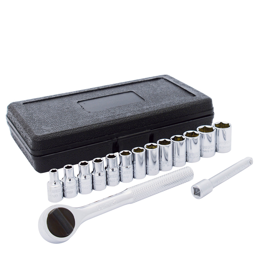 Juego de dados y accesorios cuadro de 1/4" en pulgadas, 6 puntas, 15 piezas Surtek