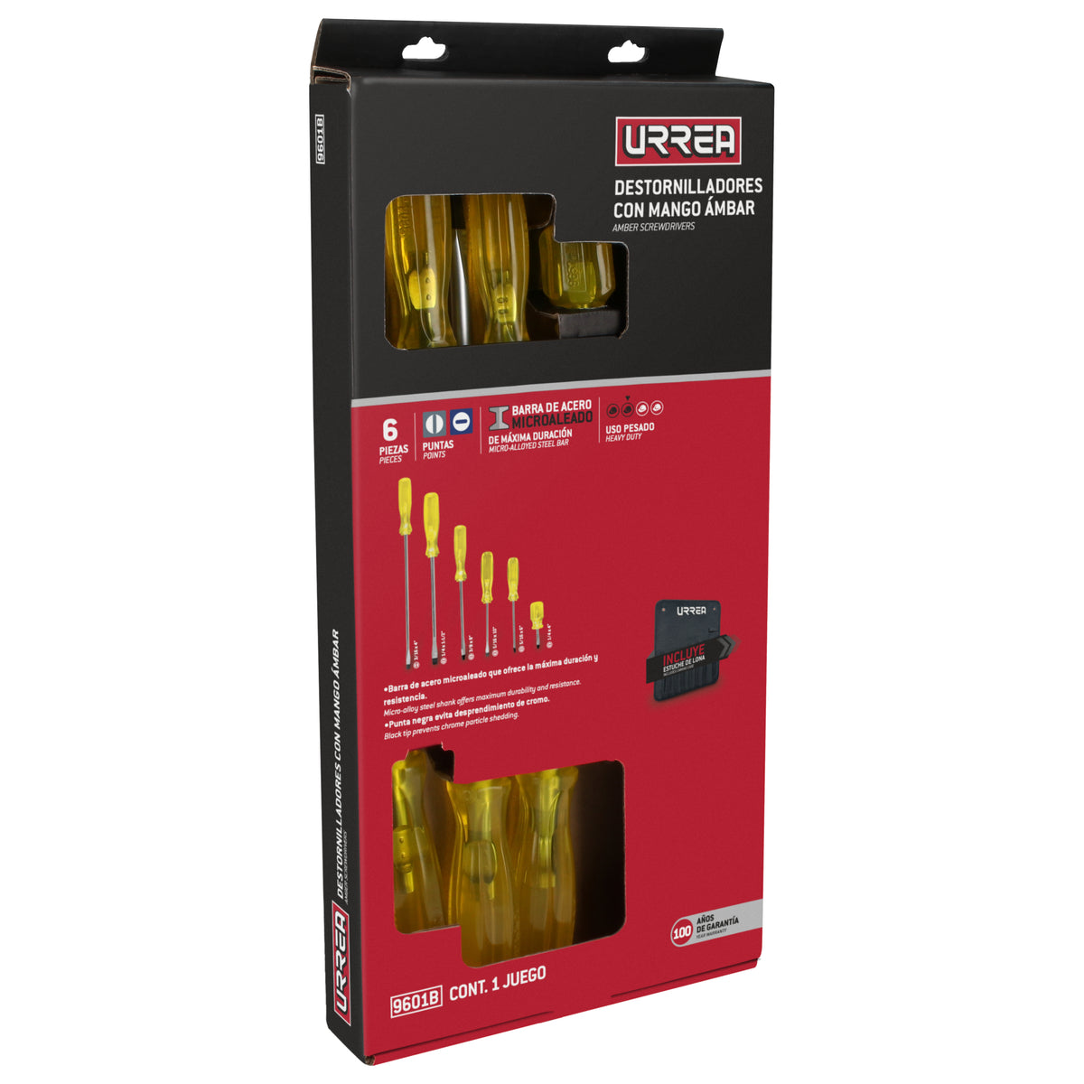 Juego de destornilladores con mango ámbar combinados, 6 piezas Urrea