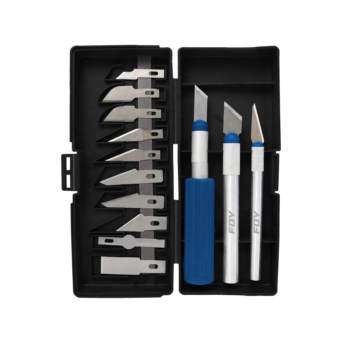 -Kit de 13 navajas diferentes que generalmente son utilizadas para cortar gran diversidad de materiales y/o productos. Juego de exactos profesionales con estuche, 13 piezas.