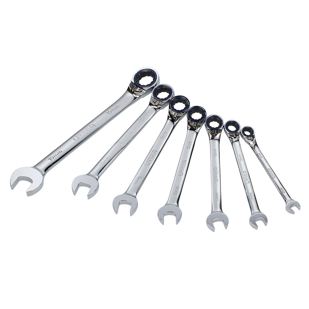 Juego de llaves combinadas pulido espejo de matraca rev métricas, 12 puntas, 7 piezas Urrea