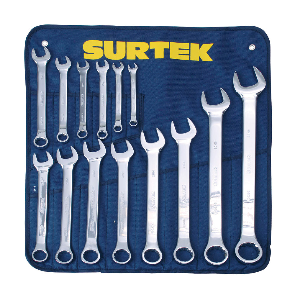 Juego de llaves combinadas pulido espejo en pulgadas, 12 puntas, 14 piezas Surtek