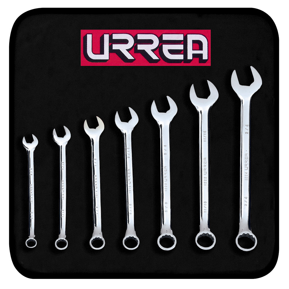 Juego de llaves combinadas pulido espejo en pulgadas, 12 puntas, 7 piezas Urrea