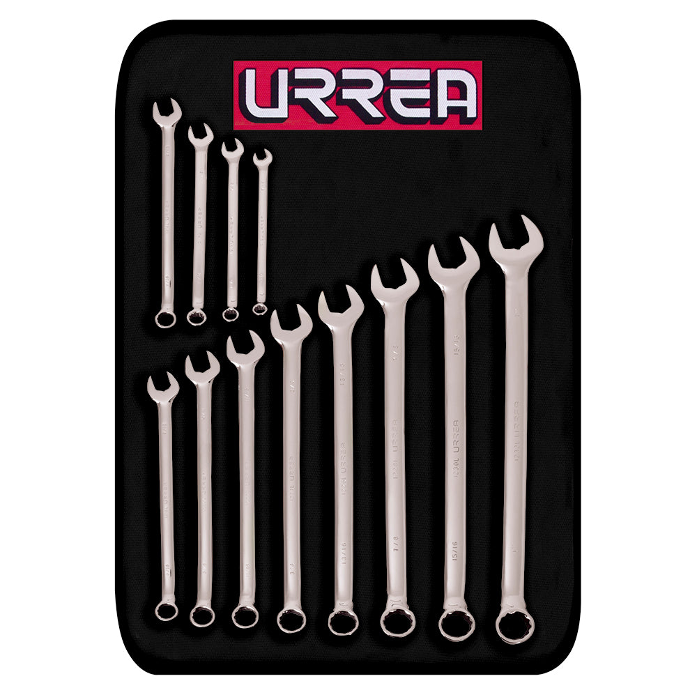 Juego de llaves combinadas pulido espejo extra largas métricas, 12 puntas, 12 piezas Urrea