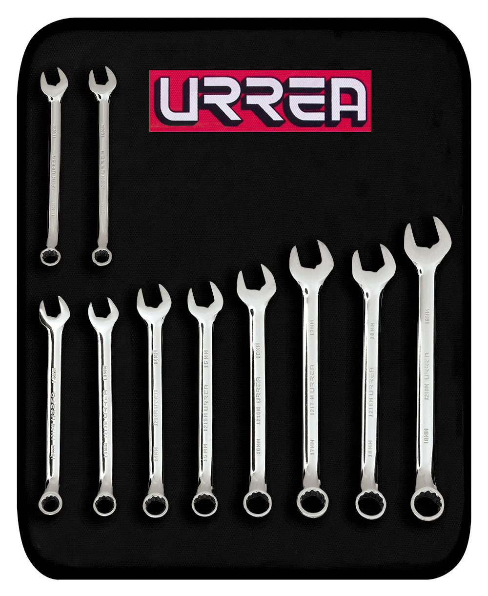 -Juego de 10 llaves combinadas pulido espejo 12 puntas métricas Urrea