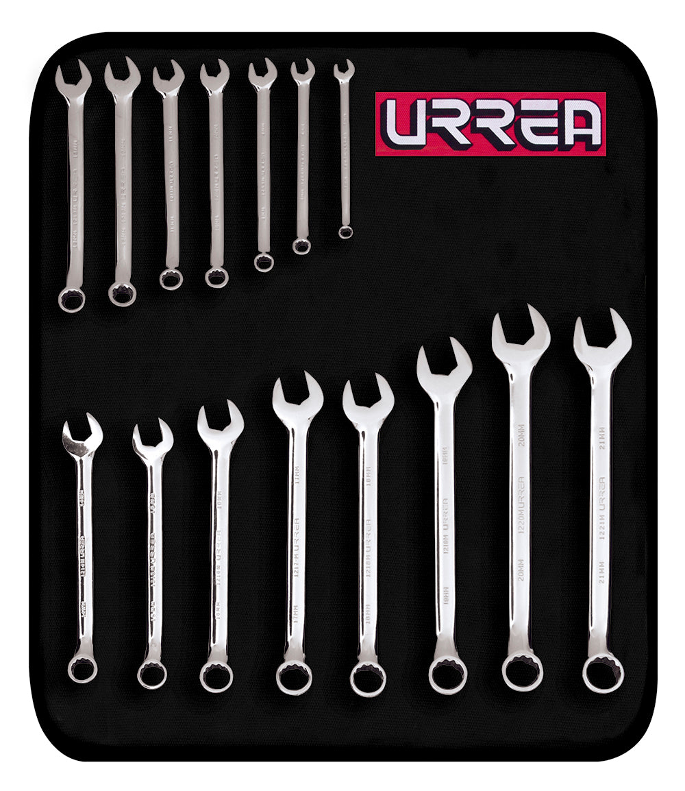 -Juego de 15 llaves combinadas pulido espejo 12 puntas métricas Urrea