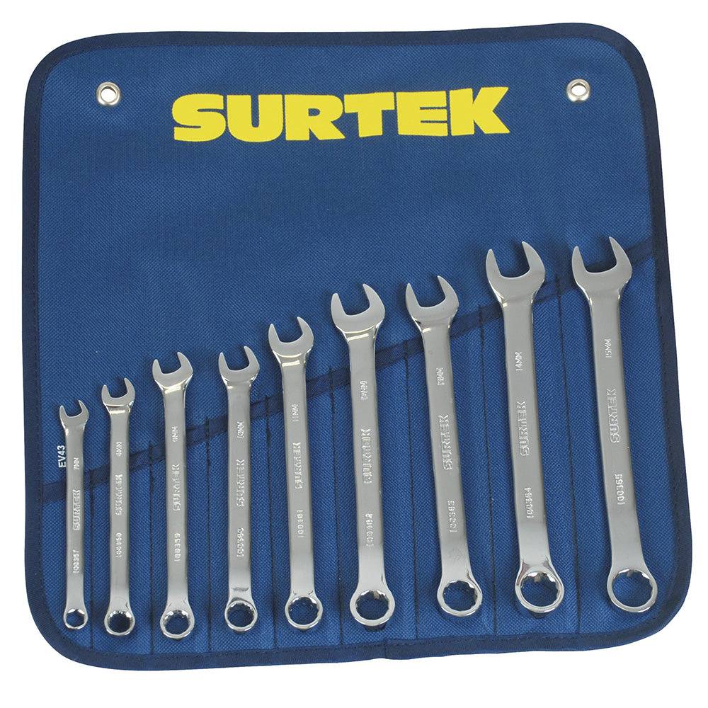 Juego de llaves combinadas pulido espejo métricas, 12 puntas, 9 piezas Surtek