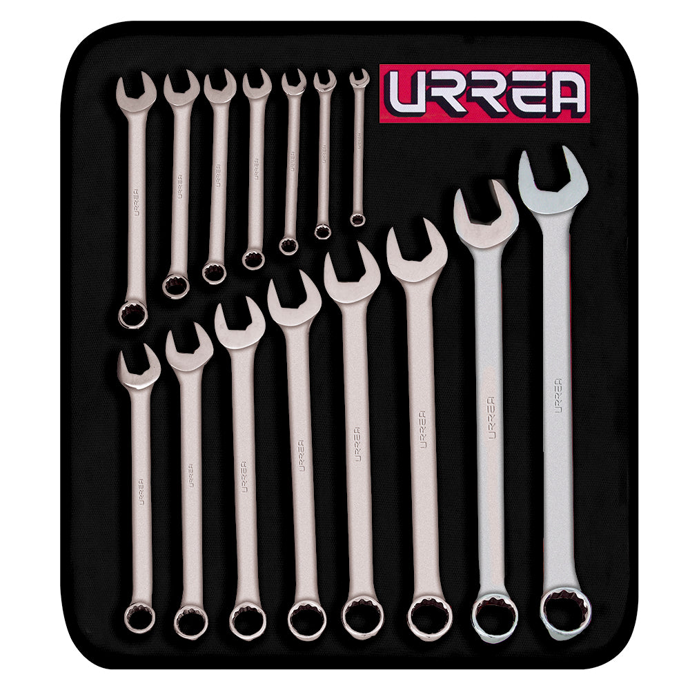 -Juego de 15 llaves combinadas satinadas métricas Urrea
