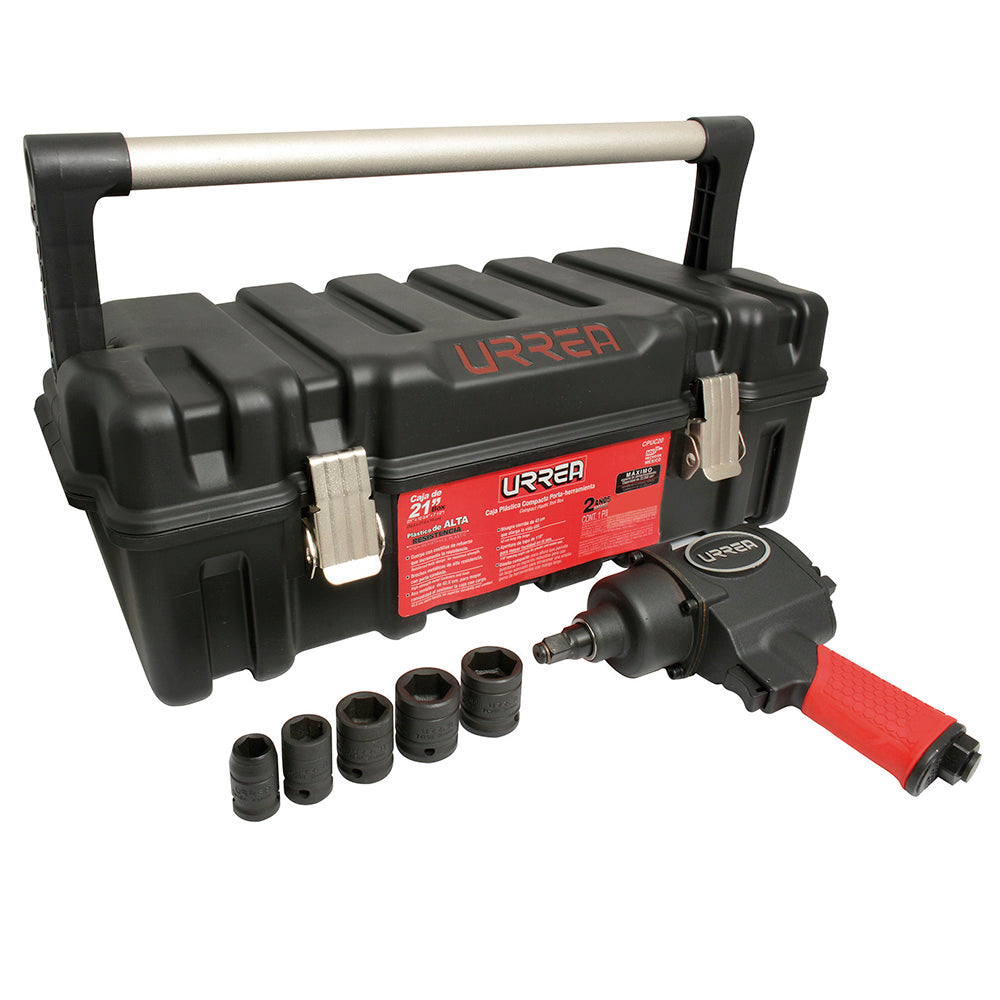 Juego de pistola de impacto neumática cuadro de 1/2" y accesorios métricos,7 piezas Urrea