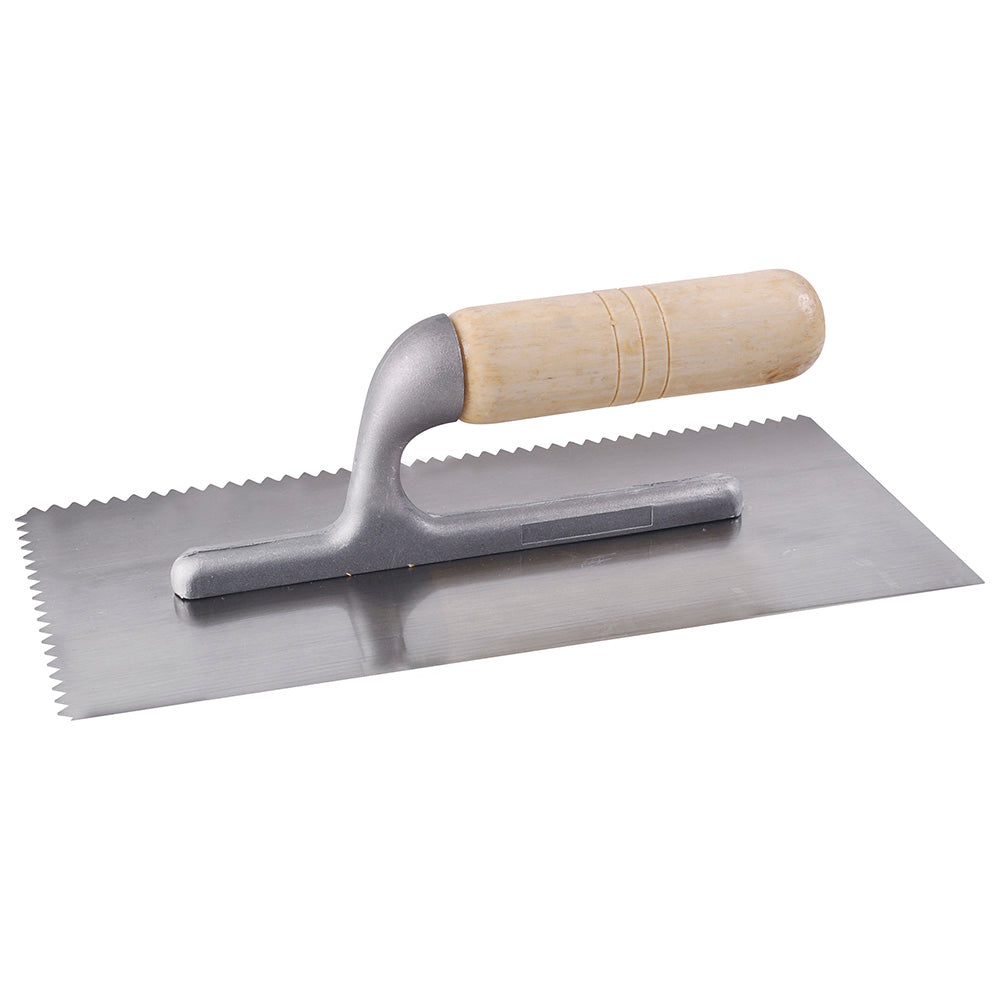 Paquete de 3 piezas de Llana dentada triangular de acero al alto carbón con mango de madera 11" x 5" Surtek