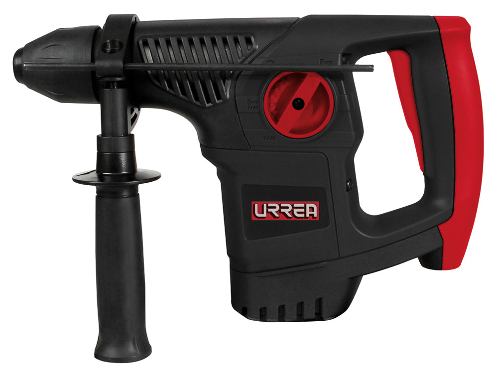 -Rotomartillo electroneumático SDS Plus 900W 120V 4.5J Urrea. -Mandril sus plus. Embrague de protección para sobrecarga. Switch electrónico para variación de velocidad.. -4 funciones: taladro, rotomartillo, martillo, cincel + ángulo ajustable con 12 posiciones.. -Diseño de ventilaciones para rendimiento superior. Diseño de motor con protección anti polvo. Sistema de mecanismo de levas.. -Diseño compacto, mejor relación peso-potencia, menos fatiga a largo plazo, más confort, más control. Gran empuñadura para mayor confort. Manija lateral con "soft grip". -Broquero: Sds Plus