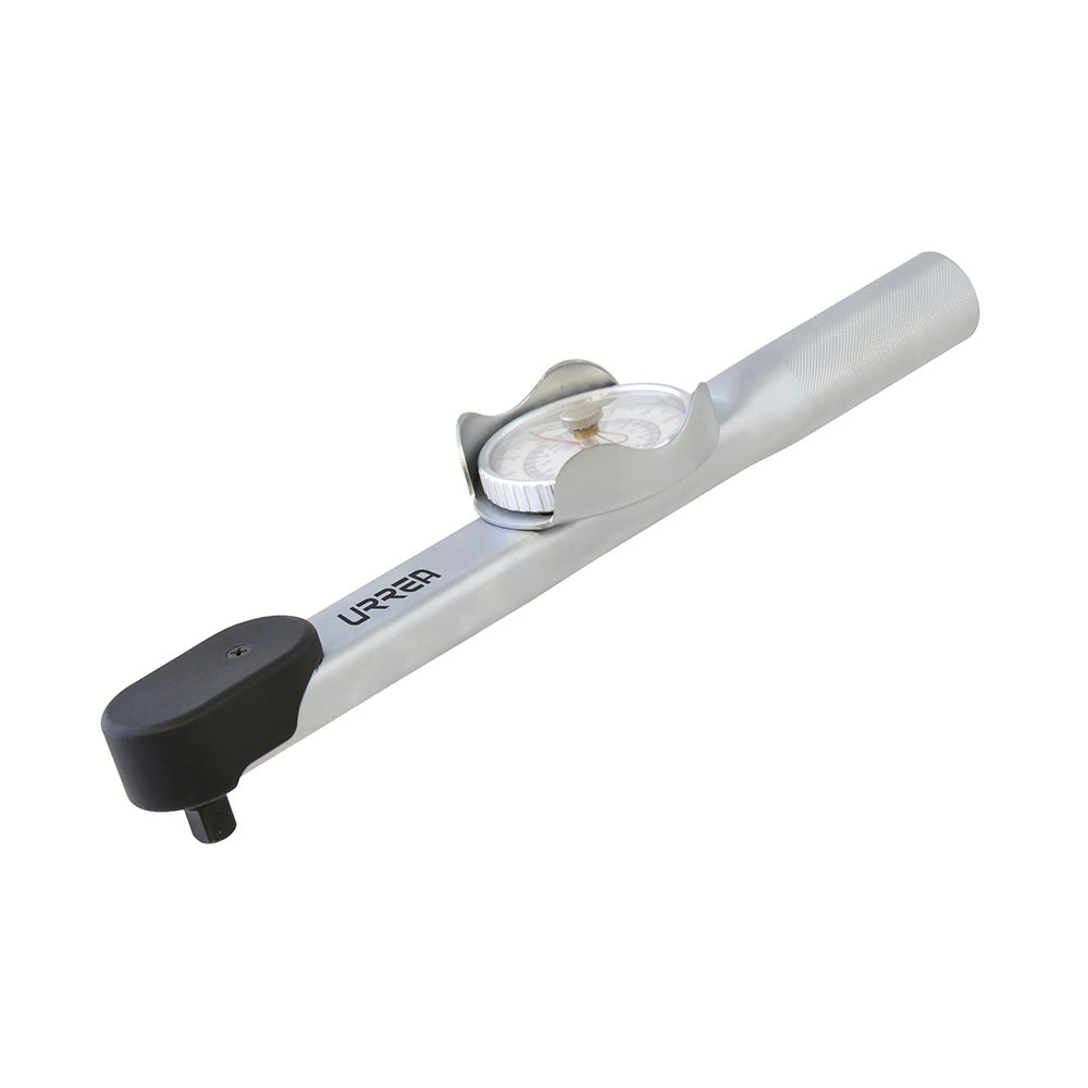 Torquímetro de carátula con cuerpo de aluminio cuadro de 3/8", 30-150 in-lb Urrea